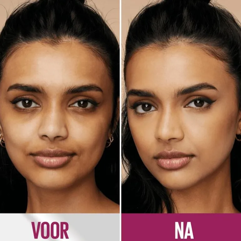 Voor een subtiele correctie breng je de concealer vóór foundation aan. Voor maximale dekking en precieze correctie breng je hem na foundation aan. Zo worden donkere kringen en oneffenheden effectief gecamoufleerd.
