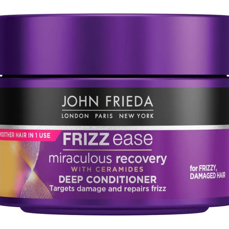 John Frieda Frizz Ease Miraculous Recovery Deep Conditioner een intense wekelijkse treatment is speciaal gecreëerd om kracht te herstellen & ultradroog, beschadigd haar te versterken. De treatment met Anti-Damage Technology herstelt beschadigd haar niet alleen maar beschermt ook tegen toekomstige haarbreuk. Je pluizige haar wordt zijdezacht en gevoed. Geschikt voor alle soorten pluizig haar. Veilig voor gebruik op gekleurd haar.Vegan Friendly: zonder dierlijke ingredienten en niet getest op dieren.