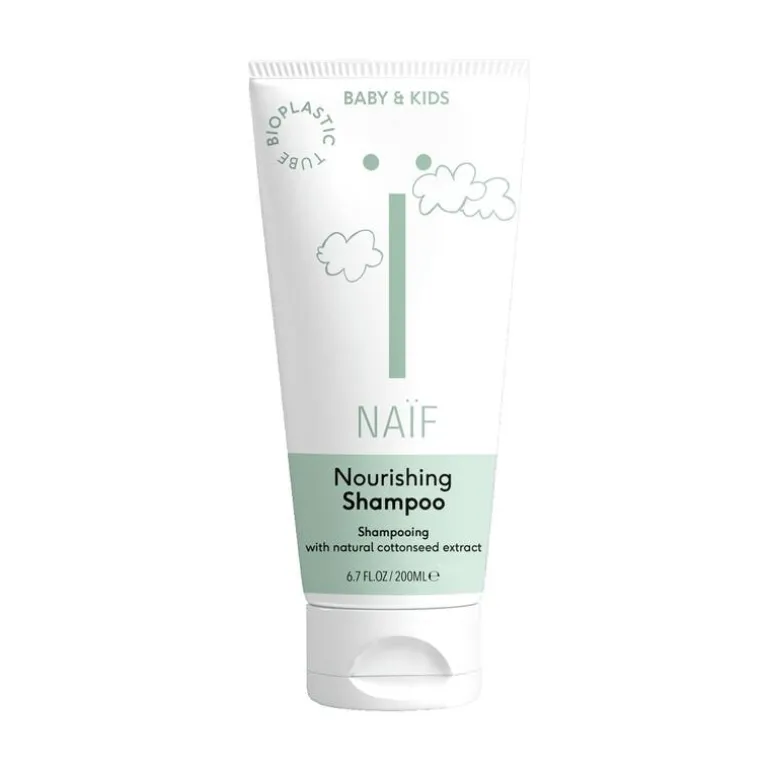 Naïf Voedende Shampoo is er voor iedere baby en kind. En zelfs voor baby’s zonder haar, want babyshampoo is ook goed om een droge hoofdhuid te voorkomen. De shampoo zit boordevol natuurlijke ingrediënten zoals katoenzaadoliedie het haar én hoofdhuid op een zachte wijze reinigen en verzorgen. Het resultaat: schone, zachte en goed doorkambare haren. Ook fijn: de babyshampoo prikt niet in de ogen. Plus, het ruikt heerlijk!