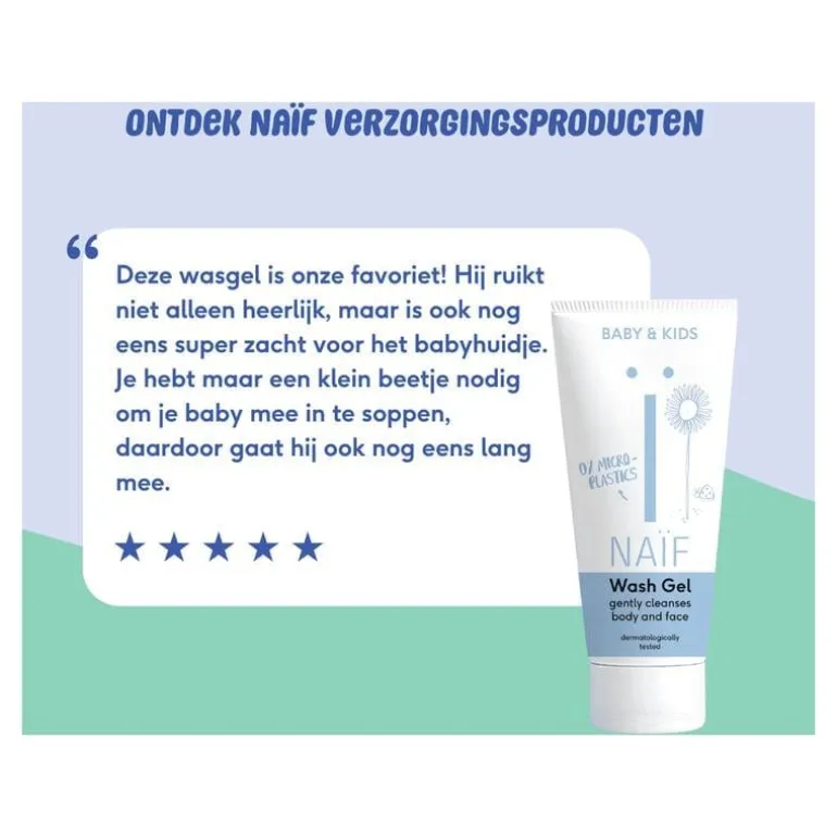 Alle producten van Naïf zijn gemaakt met ingrediënten van natuurlijke oorsprong, vegan en dermatologisch getest. Ook bevatten ze geen microplastics.