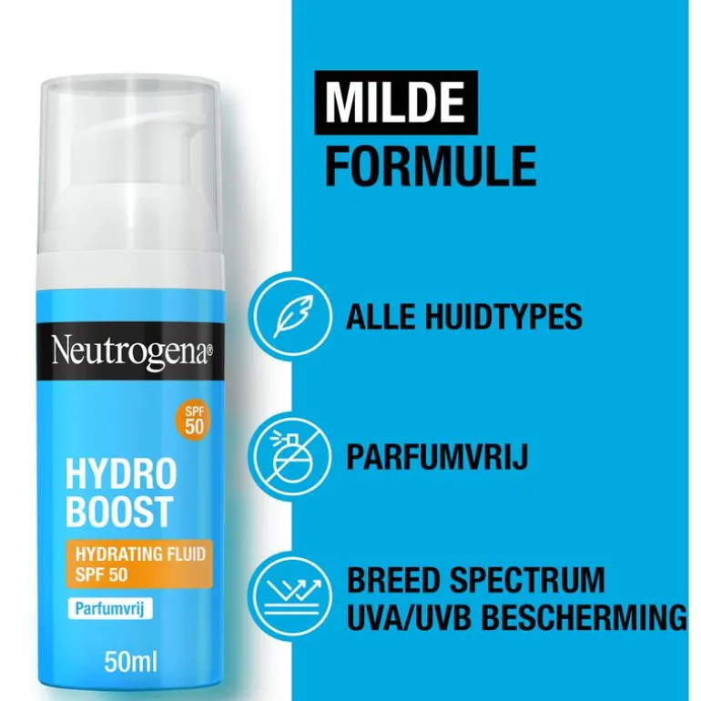 - Klinisch bewezen hydratatie en bescherming: De Neutrogena® Hydro Boost Hydrating Fluid SPF 50 biedt langdurige, klinisch bewezen hydratatie met onmiddellijke resultaten na de eerste toepassing