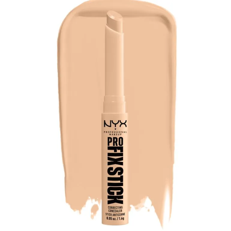 NYX Pro Fix Stick is een corrigerende concealer voor een gezondere, egaler uitziende huid. Donkere kringen? Verkleuringen? Roodheid? De Pro Fix-stick biedt de ideale oplossing. Pak huidstress aan en wees lief voor je huid. Met hyaluronzuur voor een zachte finish die nooit droog aanvoelt. Verkrijgbaar in 24 kleuren om imperfecties te camoufleren en je huid te doen stralen. Deze romige multitasker levert bovendien een volledige dekking met een matte finish die tot wel 12 uur houdt. De vegan en dierproefvrije formule zonder dierlijke bestanddelen laat geen plakkerig gevoel achter en is veegvast en transferproof.Deze concealer stick laat de huid ademen en voelt ongelofelijk comfortabel aan. Breng hem moeiteloos aan onder of op je foundation voor een natuurlijk stralende teint. De nauwkeurige punt geeft je de totale controle om het verschil te maken. Een fantastische oplossing om de zichtbaarheid van poriën en fijne lijntjes te verminderen!Kies uit een breed assortiment aan tinten voor alle behoeften en huidtinten. Neutraliseer roodheid op alle huidtinten met de kleur Green of camoufleer verkleuringen op een lichte huid met Pink. Yellow corrigeert donkere kringen en doet een lichte of gemiddelde huid stralen. Kortom, kies jouw optimaal dekkend kleur en ervaar het verschil!NYX Professional staat bekend om haar kwalitatieve, pigmentrijke make-upproducten en weerspiegelt de nieuwste make-up trends. In het portfolio van NYX vind je alles, van lippenstiften en oogschaduw tot eyeliners en concealers. Zowel populair bij het grote publiek, als bij professionele visagisten over de hele wereld!