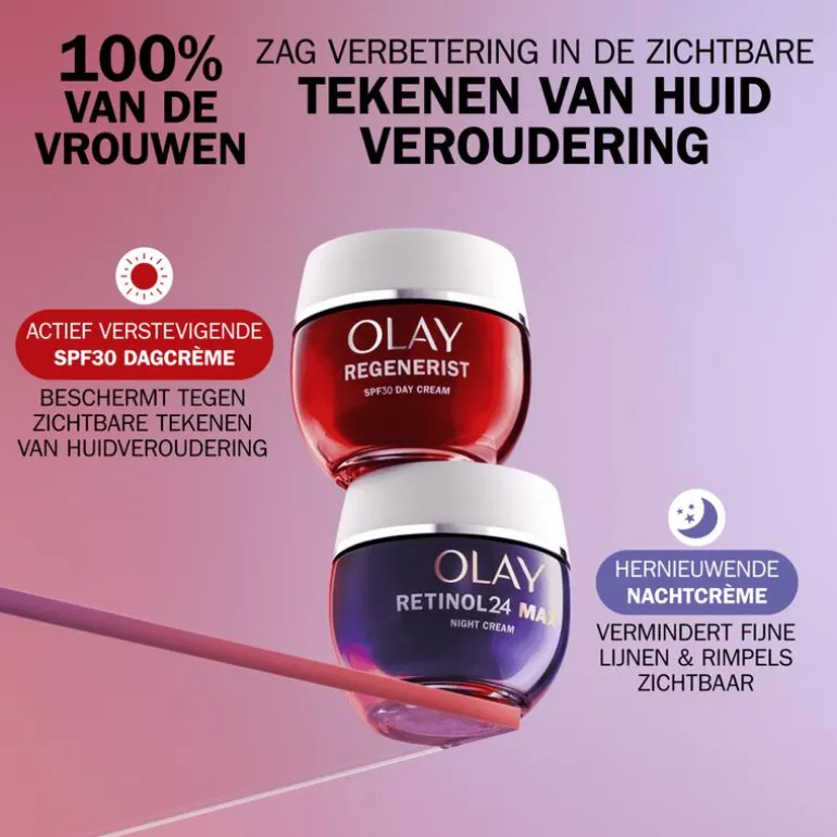 Smeer ’s morgens gelijkmatig uit over het hele, gereinigde gezicht en hals. Gebruik Olay Regenerist Dagcrème dagelijks gedurende 28 dagen. Je huid ziet er echt heel anders uit.