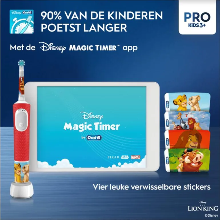 De Oral-B Pro Kids elektrische tandenborstel, aanbevolen door tandartsen voor kinderen vanaf 3 jaar, biedt een milde, effectieve reiniging. Met 2 borstelstanden, waaronder een unieke, kindvriendelijke gevoelige stand reinigt deze borstel de tanden van kinderen voorzichtig. Hij verwijdert meer tandplak dan een gewone manuele tandenborstel. Er zitten 4 themastickers bij om het handvat mooier te maken.