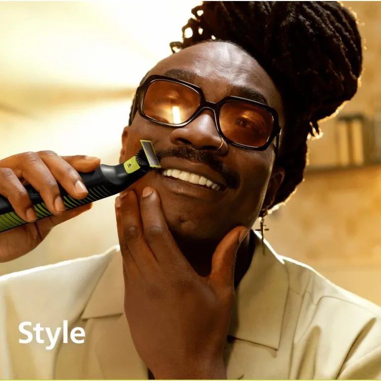 Met de Philips OneBlade Pro 360 Face + Body trim, scheer en style je moeiteloos gezichts- én lichaamshaar van elke lengte. De 360 Blade beweegt in alle richtingen, waardoor je makkelijk de moeilijkste gebieden bereikt, met minder bewegingen*. Trim je baard op een nauwkeurige lengte met de precisietrimkam met 12 lengtestanden, gebruik de lichaamstrimkam (3mm) voor een comfortabele trimbeurt op je lichaam of plaats de huidbeschermingskap op het mesje voor extra bescherming op gevoelige gebieden. Creëer makkelijk en snel jouw eigen stijl met Philips OneBlade Pro 360. Elk mesje gaat tot 4 maanden mee**.