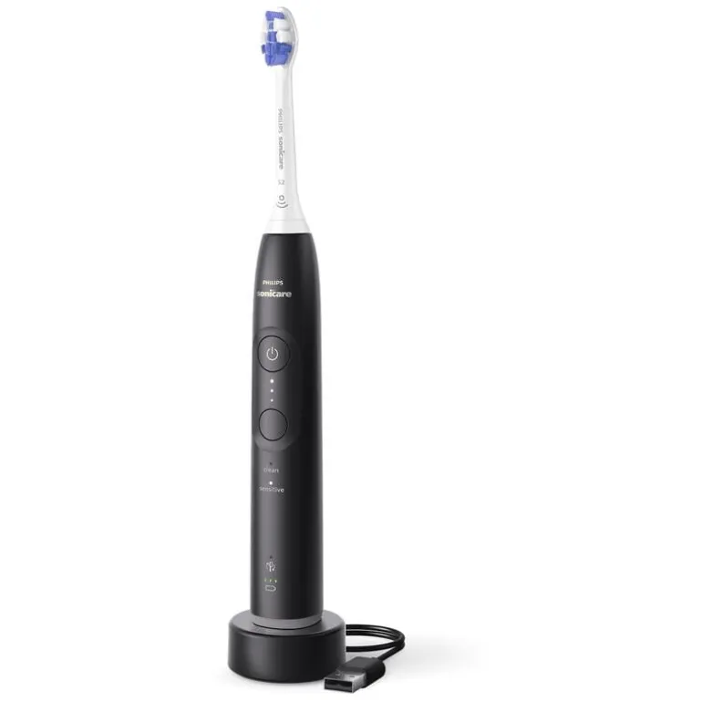 De Philips Sonicare 6100 Series elektrische tandenborstel wordt geleverd met de Sensitive-opzetborstel, geschikt voor mensen met gevoelige tanden en tandvlees. Daarnaast laat de tandenborstel weten wanneer je te hard poetst en wanneer je de opzetborstel moet vervangen. Na één oplaadbeurt gaat de tandenborstel maar liefst 3 weken mee.