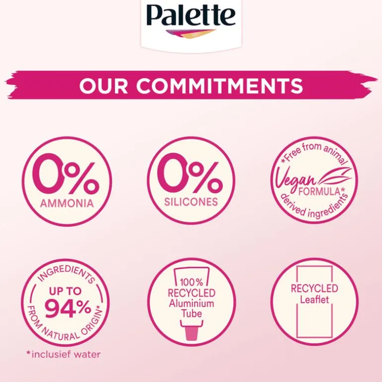 Palette is de haarkleurexpert waarop miljoenen mensen vertrouwen. Door de jaren heen hebben we unieke en efficiënte formules ontwikkeld die met trots jouw kleur- en stylingwensen ondersteunen. Of je nu je haarkleur permanent wilt veranderen, grijze haren betrouwbaar wilt camoufleren of gewoon een nieuwe look wilt uitproberen. Palette biedt je een compleet assortiment haarkleuringen om aan je persoonlijke wensen te voldoen.