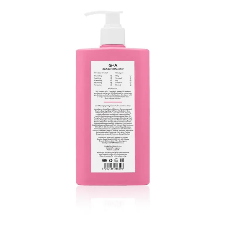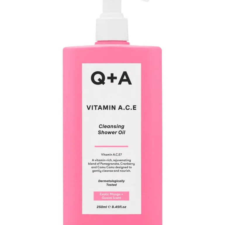 De Q+A vitamine A.C.E Cleansing Shower Oil is ontwikkeld voor een luxe en voedende reiniging en kalmeert en verjongt de huid. Deze mix van vitaminerijke fruitextracten en oliën, plus een uniek Superfood Complex ondersteunt je huidbarrière en zorgt tegelijkertijd voor een ultrazachte reiniging.