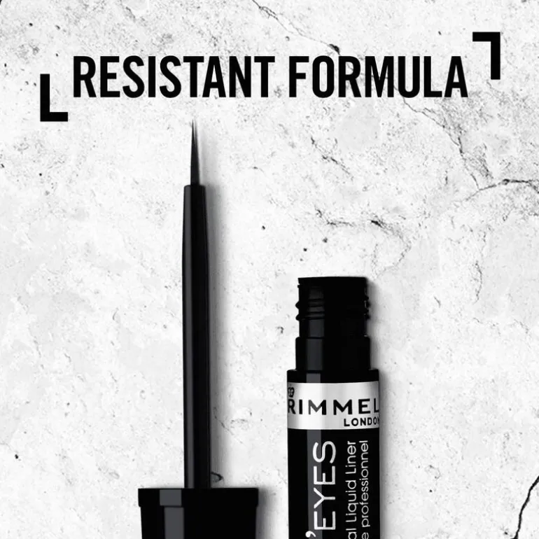 Rimmel Glam’Eyes Professional Eyeliner is verrijkt met een langhoudende vloeibare formule. De vloeibare eyeliner breng je snel en vlekvrij aan met de lichtgewichtige applicator die prettig in de hand ligt. De fijne dunne punt van de applicator zorgt ervoor dat je in één beweging een nauwkeurige lijn zet op je wimperrand zonder te vlekken. De formule is dermatologisch getest en geschikt voor gevoelige ogen en contactlensdragers.