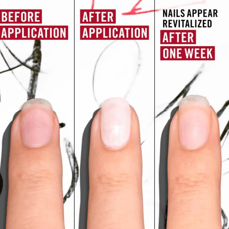 **Gebaseerd op een consumententest gedurende 7 dagen bij gebruik thuis onder 100 gebruikers van nagellak met zelfbeoordeelde zwakke/fragiele/broze nagels.