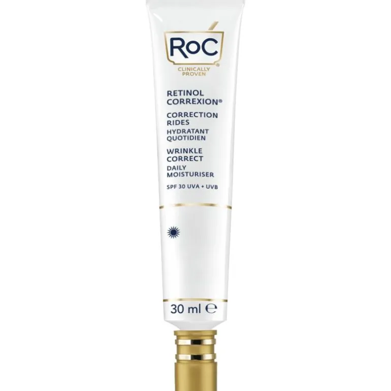 RoC® RETINOL CORREXION Wrinkle Correct Daily Moisturiser SPF 30 is een intensive anti-aging verzorging die de gehele dag door werkt om het verschijnen van lijntjes en rimpels zichtbaar te verminderen.