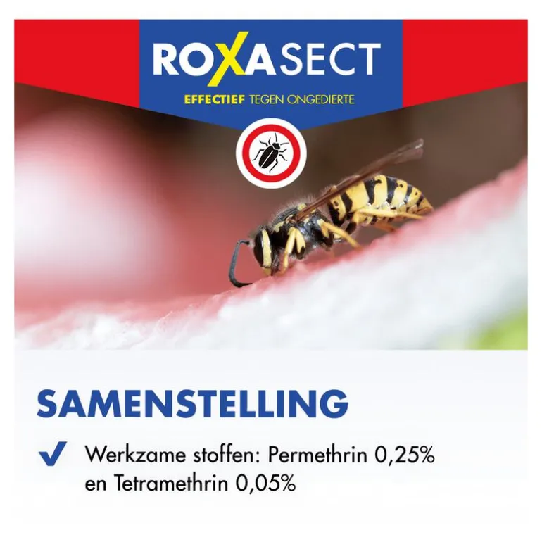Ben jij helemaal klaar met al dat ongedierte in je huis? Met Roxasect Spuitbus tegen kruipende insecten en wespen pak je deze kleine beestjes effectief aan. De werkzame stoffen permethrin en tetramethrin in deze spuitbus verstoren de overdracht van de impuls in de zenuw van het insect, waardoor het insect doodgaat.