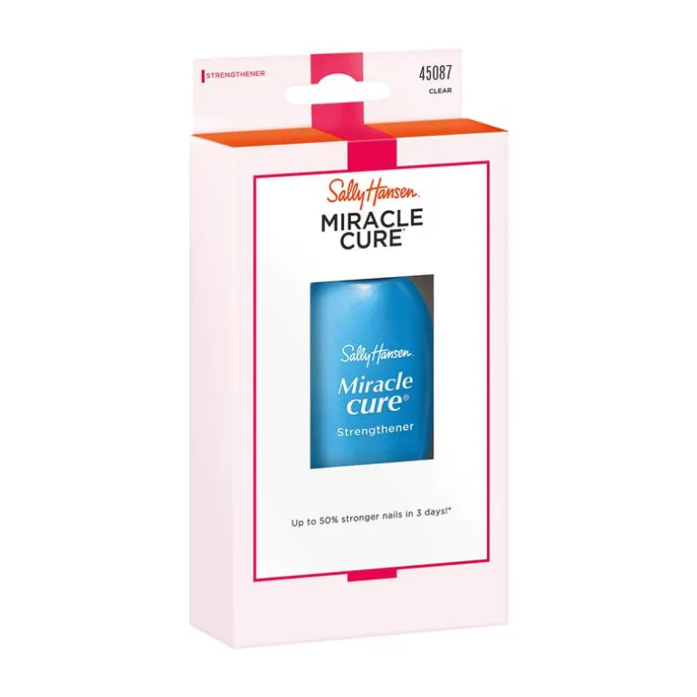 Sally Hansen Miracle Cure is speciaal voor ‘probleemnagels’. Voor sterkere nagels in slecht 3 dagen! De exclusieve micro-mineralen formule vult de scheurtjes in de nagels op en het natuurlijke eiwit en super anti-oxidanten versterken de nagels. Voor gezondere en sterkere nagels! De Miracle Cure nagelverharder biedt hierdoor een perfecte basis voor een mooie, egale manicure die langer houdbaar zal zijn.