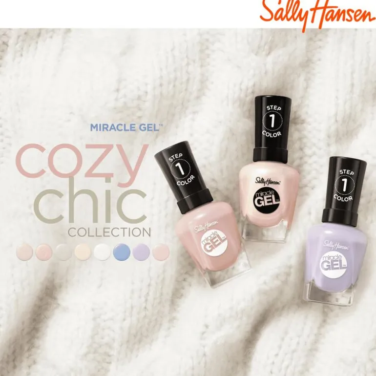 Geïnspireerd door kabeltruien, romige koffie, warme chocolademelk en alles daartussenin, krijg deze herfst dat warme en knusse gevoel met onze NIEUWE Miracle Gel® Cozy Chic Collectie. Dit assortiment van 8 crèmekleuren zal zelfs de meest neutrale outfits aanvullen, of je nu lekker warm binnen zit of warm blijft met een kopje koffie bij de open haard. Combineer je favoriete Cozy Chic tint met Miracle Gel™ Top coat voor een chipbestendige manicure die het hele seizoen meegaat. *Tot 8 dagen kleur en glans