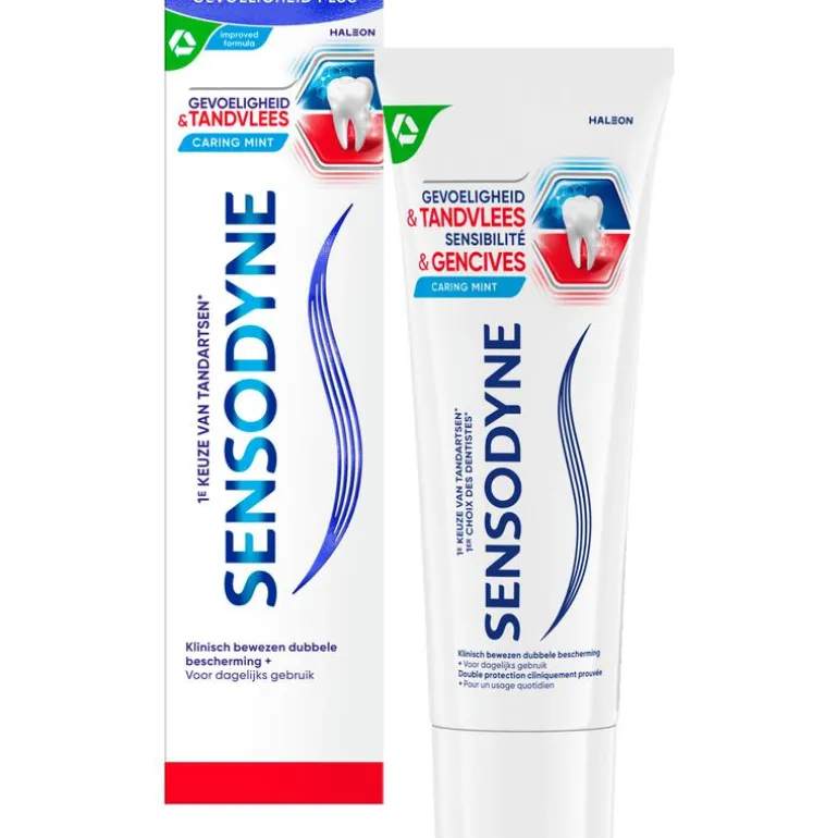 Sensodyne Gevoeligheid en Tandvlees dagelijkse tandpasta biedt bescherming bij gevoelige tanden en verbeterd de tandvlees conditie. 2 x per dag poetsen met Sensodyne Gevoeligheid en Tandvlees tandpasta zorgt voor bescherming bij gevoelige tanden en een effectieve reiniging. Het bevat fluoride, dat tandglazuur versterkt en helpt beschermen tegen cariës. Sensodyne Gevoeligheid en Tandvlees tandpasta heeft een frisse muntsmaak.