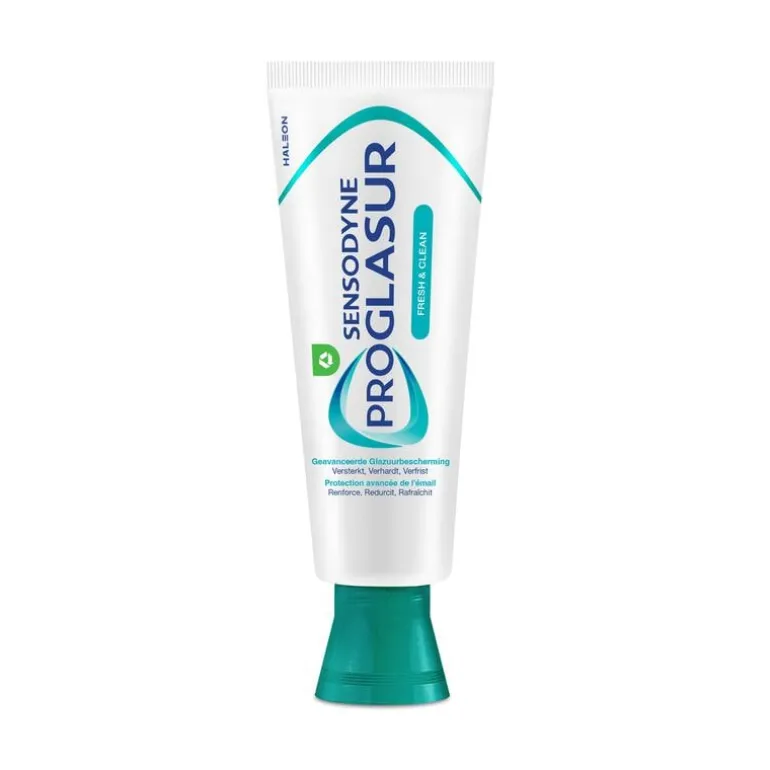 Sensodyne Proglasur Fresh & Clean tandpasta is speciaal geformuleerd om tanden te helpen beschermen tegen de effecten van tanderosie*. Wanneer je Proglasur Multi Action Fresh & Clean tandpasta gebruikt dringt fluoride diep binnen in het oppervlak van je tanden, waar ze het verzwakt glazuur actief helpt versterken en opnieuw verhardt bij elke poetsbeurt.