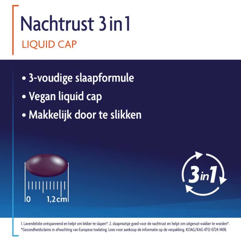 Shiepz Nachtrust 3in1 is een slaapformule die op 3 manieren de slaap ondersteunt. Geeft ontspanning in de avond* dankzij lavendelolie, het ondersteunt het behoud van een gezonde slaap dankzij slaapmutsje en alles bij elkaar helpt het je uitgerust wakker worden* dankzij slaapmutsje.