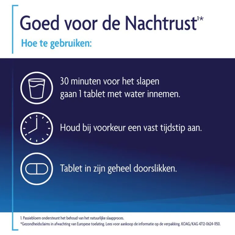 Passiebloem ondersteunt het behoud van het natuurlijke slaapproces*. Slaapmutjes helpt bij het behoud van een gezonde nachtrust*. Valeriaan helpt om een natuurlijke slaap te behouden*. Meidoorn help bij rusteloze gevoelens en helpt om lekker te slapen*. * Gezondheidsclaim in afwachting van Europese toelating