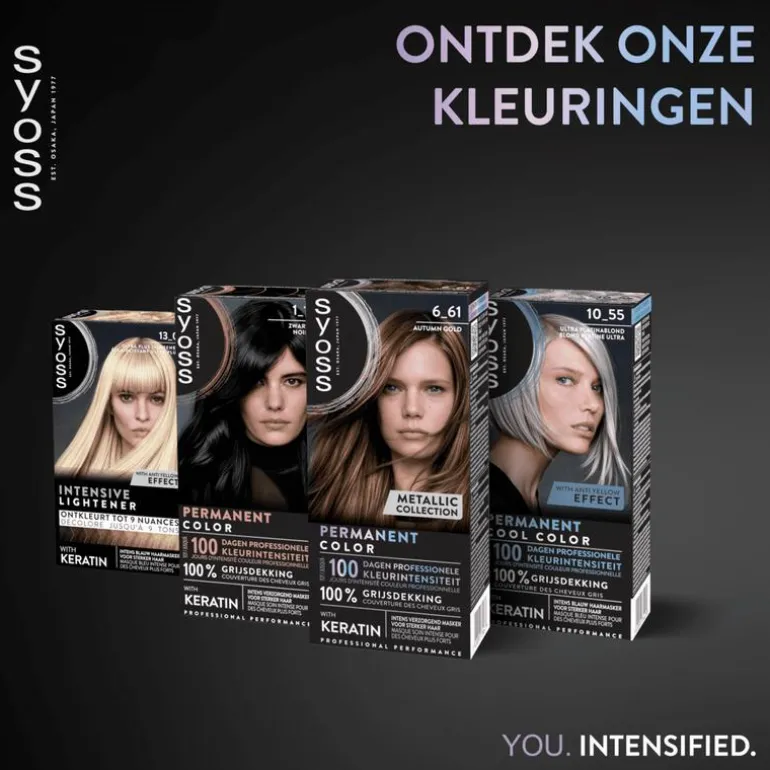 Bij Syoss is het onze missie om je de salonkwaliteit te bieden die je haar verdient. Syoss staat voor professionele kwaliteit en biedt een fantastisch resultaat bij elk gebruik. Onze formules zijn zowel ontwikkeld en getest door kappers. Met Syoss haarverf brengen we de nieuwste trendy haarkleuren zoals ze rechtstreeks uit de salon komen.
