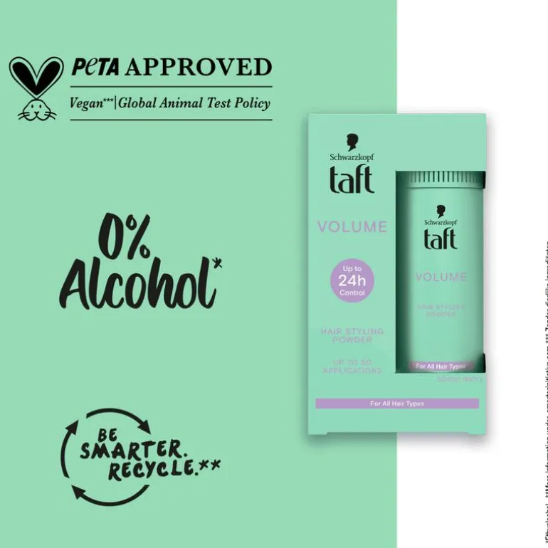 Taft Volume poeder is een ideaal product voor direct volume vanaf de haaraanzet. Het geeft lichtgewicht volume, grip en textuur aan alle haartypes. Gemakkelijk aan te brengen en uit te wassen.