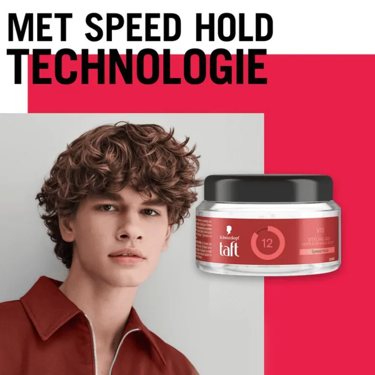 Taft V12 Styling Gel met speed-hold technologie plakt niet en is gemakkelijk uit te wassen. Deze gel is zacht voor haar en hoofdhuid en bevat hydraterende panthenol. Het helpt het haar te beschermen tegen vochtigheid en wind. Alle Taft formules zijn vegan* en PETA gecertificeerd**.
