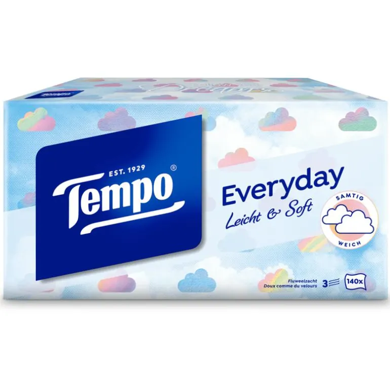 Dankzij een unieke combinatie van unieke zachtheid en sterkte ben je met Tempo producten gewapend voor elke situatie. Bovendien is het hele Tempo-assortiment wasmachinebestendig.