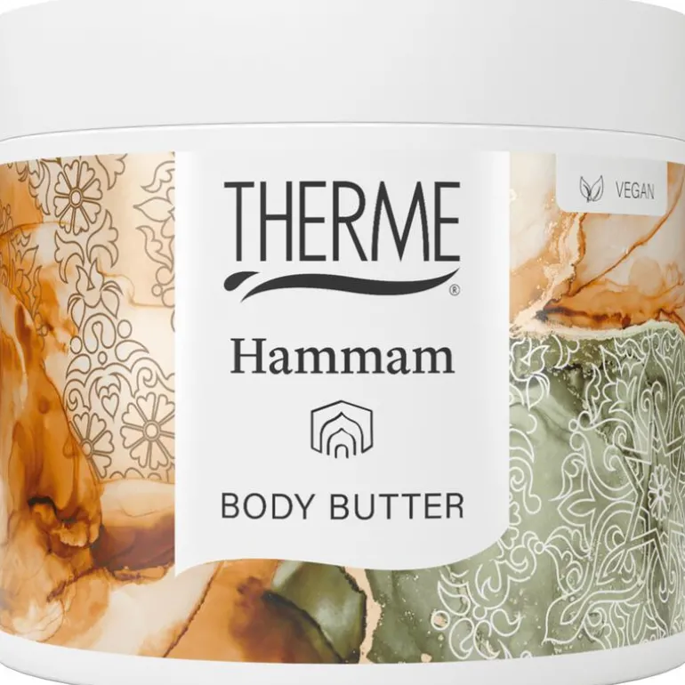 Ontspan lichaam en geest en prikkel je zintuigen met deze luxe wellness beleving. Therme Hammam Body Butter to Oil is een rijk voedende crème met organic argan- en olijfolie die de huid intensief hydrateert. Na even inmasseren verandert de crème in een voedende lichaamsolie. Het laat een verzorgend laagje achter en parfumeert het lichaam langdurig. Geniet van de oriëntaalse geur van cederhout gecombineerd met warme oosterse kruiden en aromatische bergamot.
