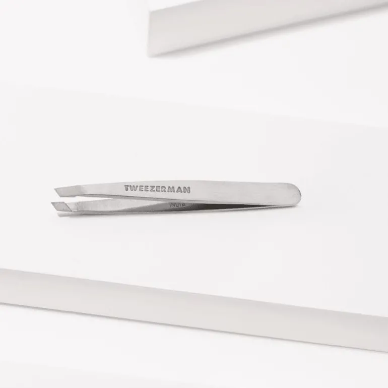 De Mini Slant Tweezer van Tweezerman is de kleinere variant van de wereldberoemde Slant Tweezer. Het perfect gevormde pincet met handgeslepen, schuin aflopende punten verwijdert keer op keer zelfs de fijnste haartjes met dezelfde precisie. Ideaal formaat voor in de make-up tas en voor op reis.