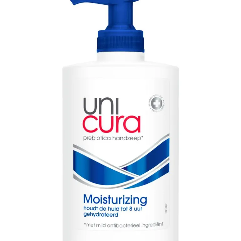Unicura Prebiotica handzeep* Moisturizing reinigt de huid effectief terwijl het de natuurlijke hydratatie op peil houdt. Het maakt de huid sterker tegen aanvallen van buitenaf en zorgt voor natuurlijk hydratatie na iedere keer handen wassen.*De formule bevat prebiotische en postbiotische ingrediënten. Daarmee voeden we de goede bacteriën en bestrijden we de slechte om zo de natuurlijke beschermlaag van de huid te versterken.