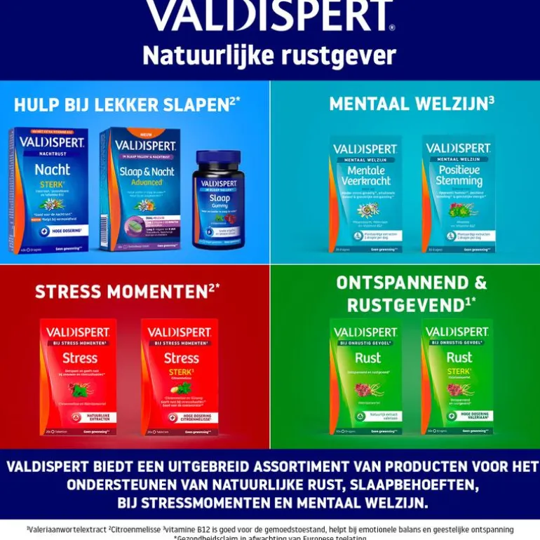 Valdispert Positieve Stemming is een product van Valdispert Mentaal Welzijn assortiment, producten die je helpen je lekker in je vel te blijven voelen, waardoor je in balans blijft en je het beste uit jezelf kunt halen. Positieve Stemming is een mix van natuurlijke plantaardige extracten zoals Rhodiola en Valeriaanwortel, en B-vitaminen. Positieve Stemming is van de hoogste kwaliteit. Valdispert, natuurlijke rustgever sinds 1924.