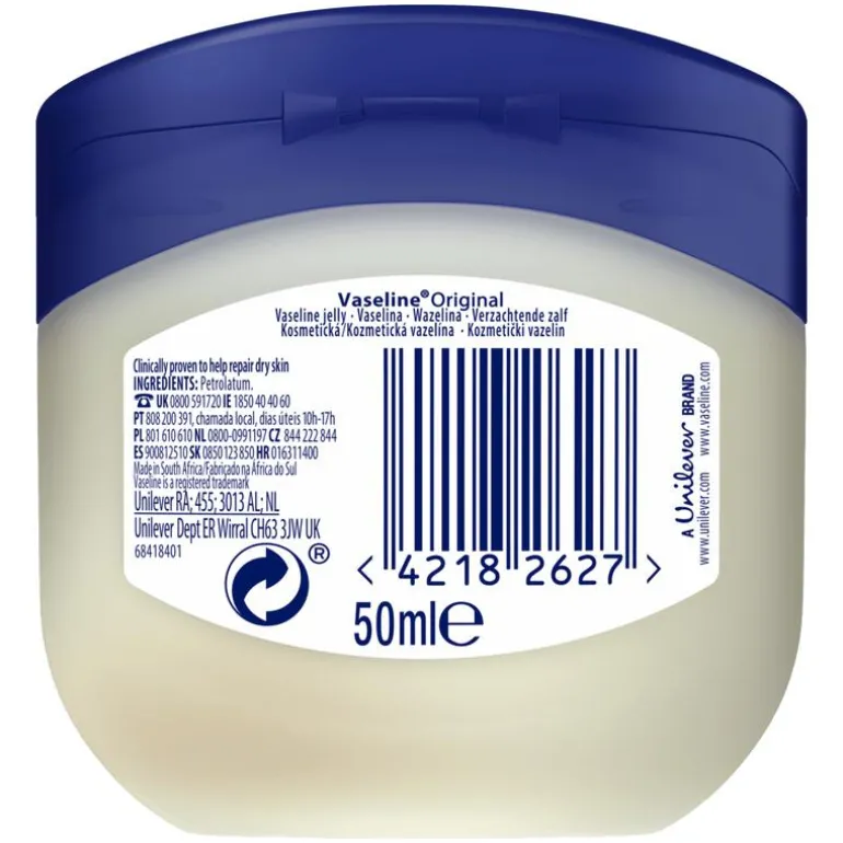 - Vaseline jelly bevat minerale oliën, paraffine- en microcrystallinewaxen