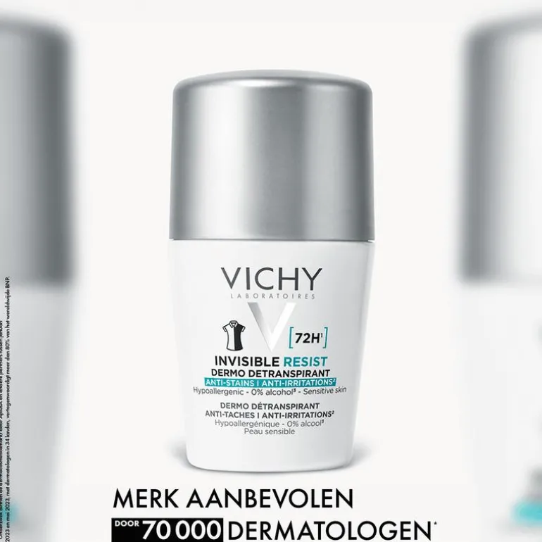 De Vichy Invisible Resist 72h Anti-transpirant is speciaal ontwikkeld voor vrouwen. Hij heeft een doeltreffende werking tegen vochtigheid en geurtjes en biedt optimale tolerantie dankzij zijn hypoallergene en alcoholvrije formule, getest op een gevoelige huid ter bescherming en tegen irritaties. Hij garandeert een hoge anti-transpiratiewerking gedurende maximaal 72 uur, met een langdurig parfum, zonder sporen achter te laten.