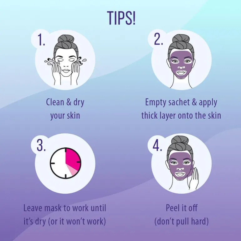 - Gebruik wekelijks voor optimale resultaat – helpt de huid zuiver te houden en minder vatbaar voor puistjes en een ongelijkmatige teint.