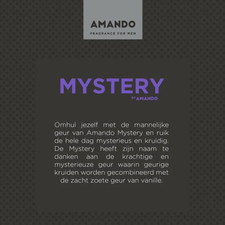 Amando staat voor sterke krachtige geuren. Er zijn vier verschillende geurlijnen die uiteenlopend zijn van heerlijk fris tot warm en kruidig. DARE TO BE STRONG!
