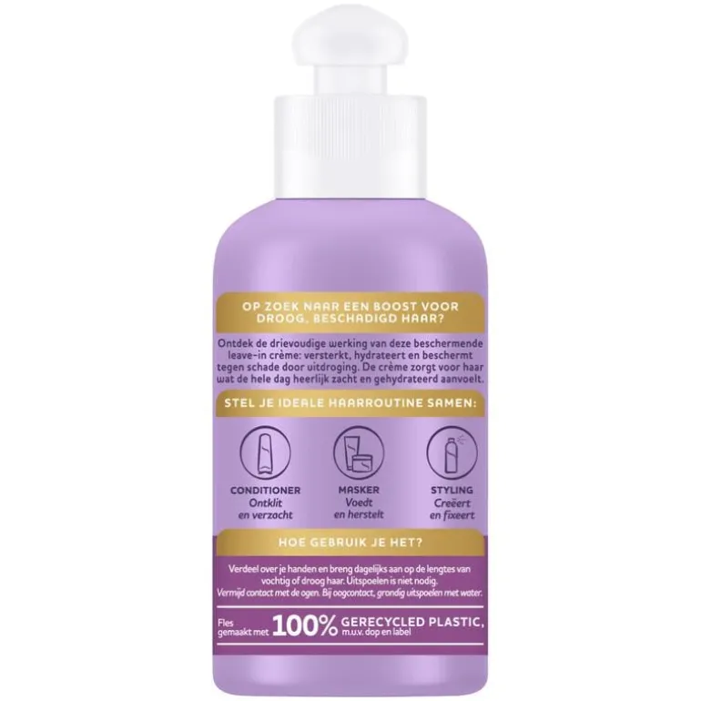 Ontdek de drievoudige werking van deze beschermende leave-in crème: versterkt, hydrateert en beschermt tegen schade door uitdroging. De crème zorgt voor haar wat de hele dag heerlijk zacht en gehydrateerd aanvoelt.