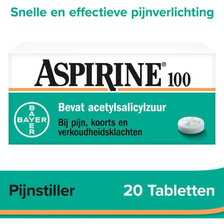 Aspirine is één van de bekendste merken onder de pijnstillers en het alleroudste middel van Bayer. Aspirine heeft een pijnstillend, koortsverlagende ontstekingsremmend effect. Aspirine bevat acetylsalicylzuur en behoort tot de pijnstillergroep NSAID’s (Non-Steroidal Anti-Inflammatory Drugs). NSAID’s hebben een krachtiger pijnstillend effect dan bijvoorbeeld paracetamol. Bij niet-bacteriële infecties is een NSAID zoals acetylsalicylzuur bijzonder geschikt vanwege de ontstekingsremmende en koortsverlagende werking.Aspirine kan worden gebruikt bij bijvoorbeeld rugpijn, gewrichtspijn, nek- of schouderpijn en kiespijn, hoofdpijn, spierpijn en klachten door griep en/of koorts of verkoudheid.