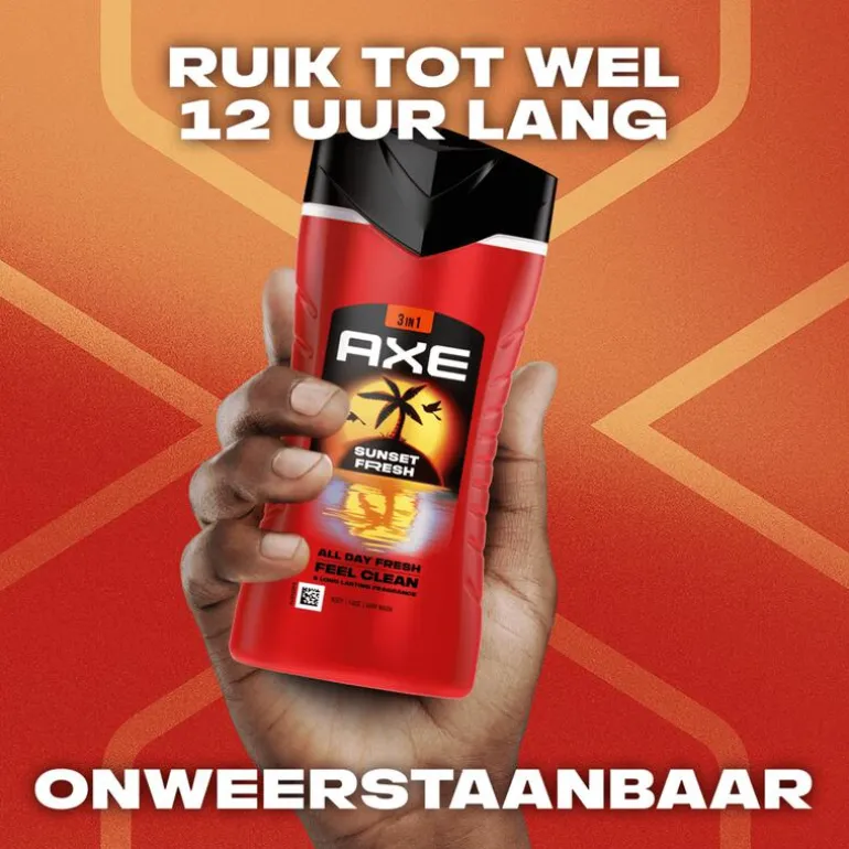 - Ruik wel 12 uur lang onweerstaanbaar met AXE Sunset Fresh 3-in-1 Douchegel