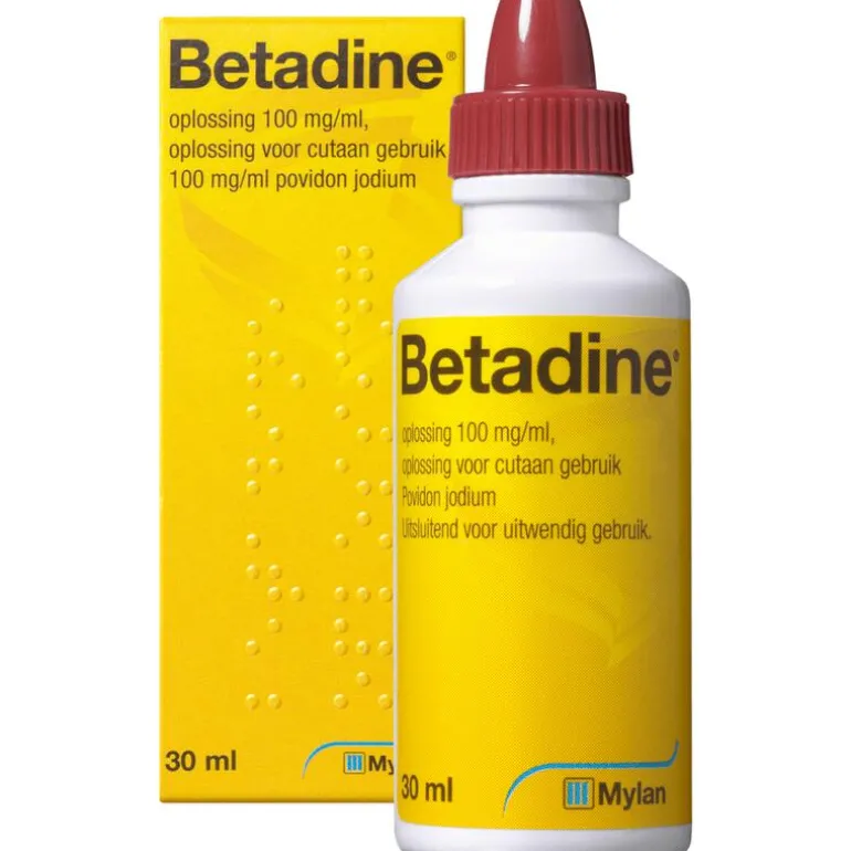 #Vermijd langdurig blootstelling van een grotere hoeveelheid Betadine op de huid.#Wees voorzichtig met het gebruik bij schildklieraandoeningen, nierfunctiestoornissen en bij een huidbehandeling met een middel met kwik.#Niet gebruiken ter voorkoming tetanus. #Uitsluitend voor uitwendig gebruik.,