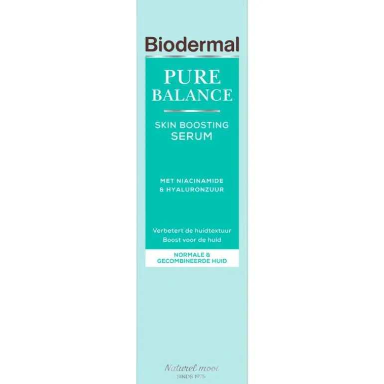 Biodermal Pure Balance Skin Boosting Serum is een hoog geconcentreerd serum speciaal ontwikkeld voor een volwassen huid met onzuiverheden en oneffenheden. De combinatie van actieve ingrediënten, zoals hyaluronzuur en niacinamide, hebben een intensieve en effectieve werking. Het serum is een dagelijkse boost voor de huid en heeft een lichte textuur die gemakkelijk door de huid wordt opgenomen. De formule verbetert en verfijnt de huidtextuur, geeft een intensieve hydratatie boost en vermindert onzuiverheden en oneffenheden.