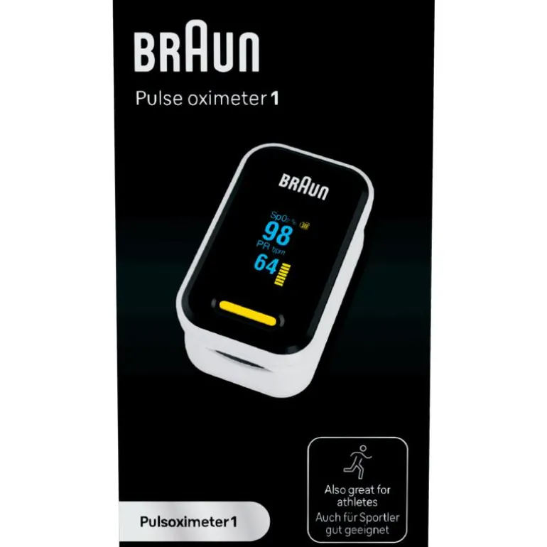 De Braun Pulse Oximeter 1 – Volwassenen vanaf 18 jaar kunnen hun ademhalingsgezondheid onder controle houden en hun zuurstofniveau altijd en overal in de gaten houden. Ideaal voor mensen met COPD, longontsteking, slaapapneu of sporters die hun vooruitgang willen bijhouden. Onze Braun Pulse Oximeter 1 heeft een eenvoudig vingerclipontwerp en éénknopsbediening. Het OLED-scherm met achtergrondverlichting kan op zes verschillende manieren draaien, zodat u snel uw resultaten vanuit elke hoek kunt zien. Bovendien schakelt het na acht seconden automatisch uit om aan te geven wanneer uw vinger zich in de juiste positie bevindt voor de meest nauwkeurige meting. Inclusief koord en twee AAA-batterijen.