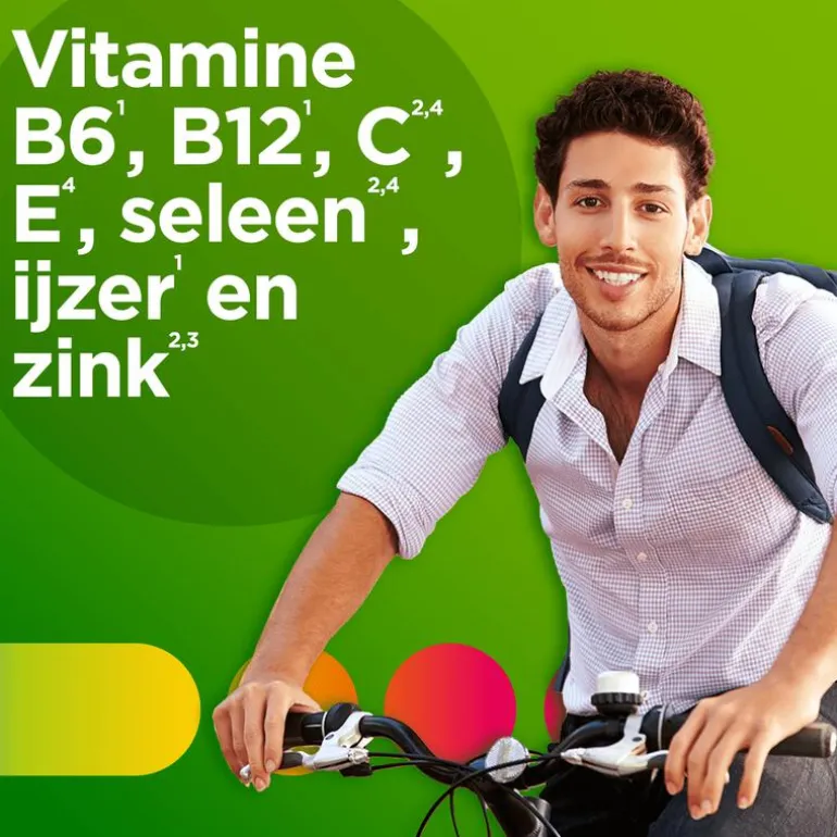Bevat vitamine B6, B12 en ijzer ter ondersteuning van de dagelijkse energiebehoeften; Bevat vitamine C, seleen en zink om het immuunsysteem te ondersteunen; Bevat zink voor het behoud van een gezonde huid; Bevat vitamine C, E en seleen die helpen de cellen te beschermen tegen oxidatieve stress, zoals zonlicht en vervuiling.