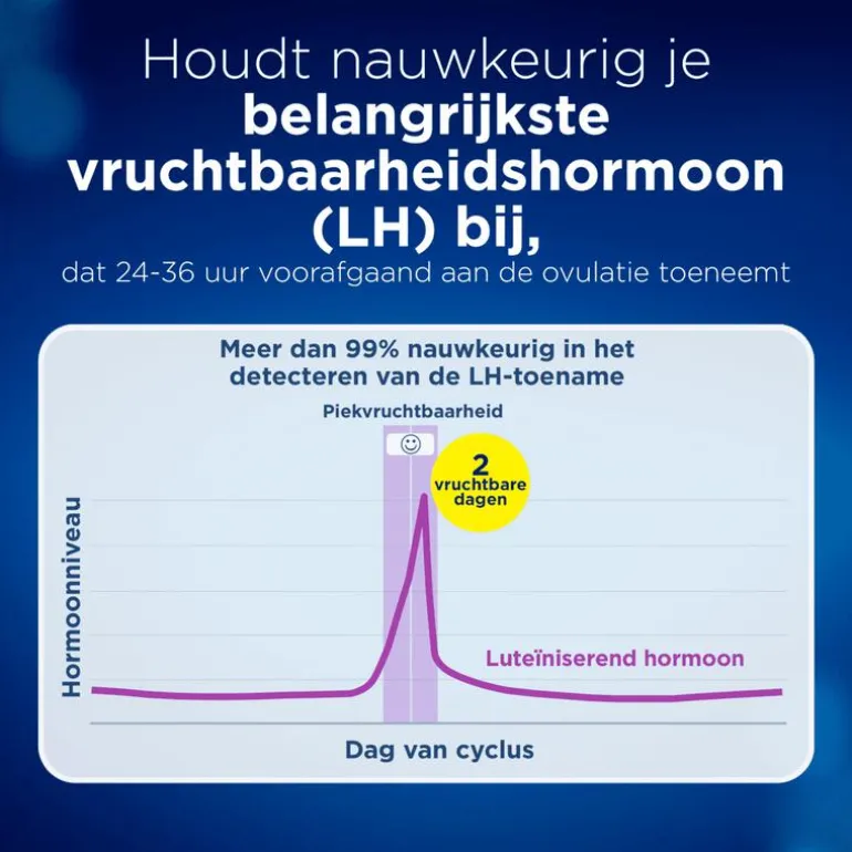 Meer dan 99% nauwkeurig bij het detecteren van de toename van luteïniserend hormoon (LH). Hormonen zijn een meer nauwkeurige voorspeller van ovulatie dan de basale lichaamstemperatuur die pas na de ovulatie stijgt