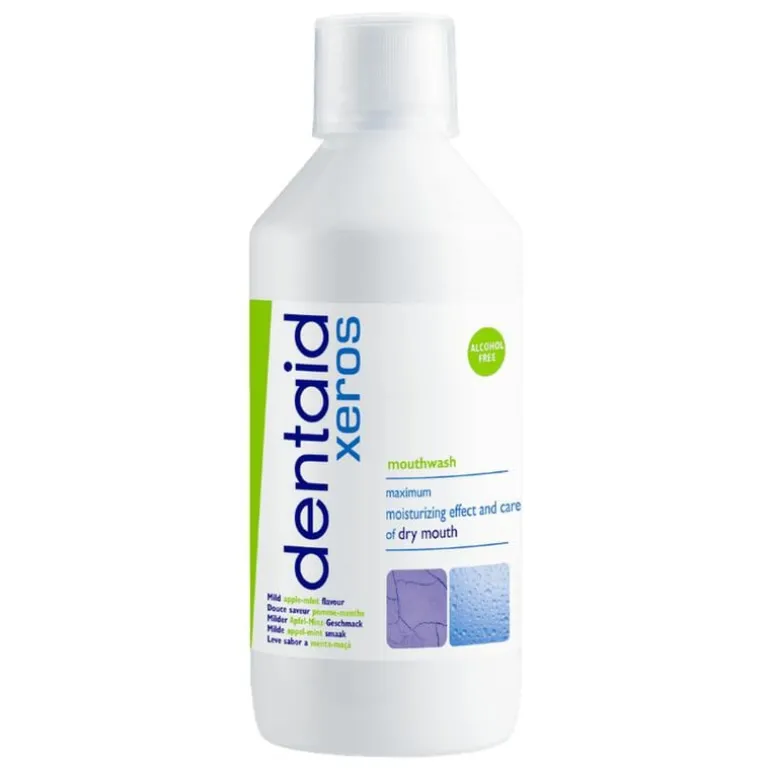 Maximale hydratatie en verzorging bij droge-mond-klachtenDentaid Xeros Mondspoeling is speciaal ontwikkeld om de mond intensief te verzorgen en de speekselaanmaak te stimuleren. Dentaid Xeros Mondspoeling draagt ook bij aan het voorkomen van mondproblemen bij droge-mond-klachten, zoals cariës (gaatjes), geïrriteerd tandvlees en een slechte adem. Voor een optimale werking is het raadzaam om ook Dentaid Xeros Tandpasta te gebruiken.