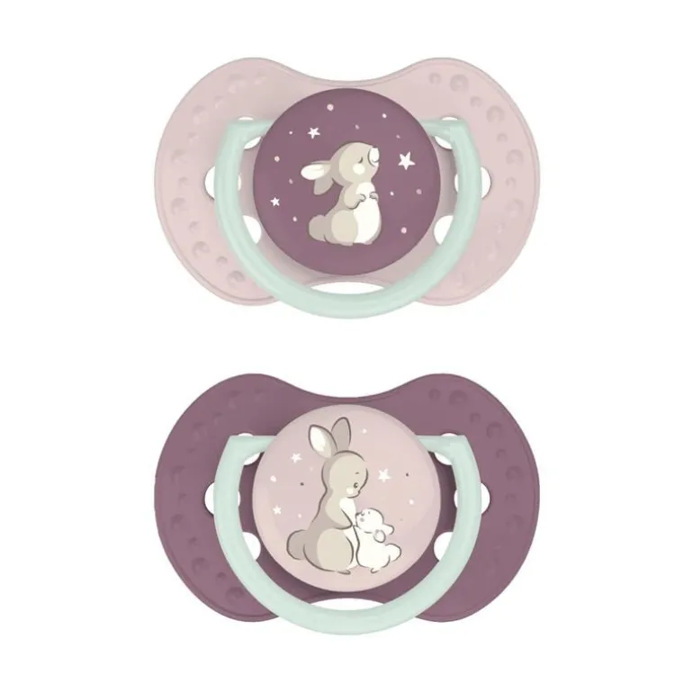 • Beschermt de natuurlijke zuigreflex van je baby • Symmetrische vorm imiteert de moedertepel voor hoge acceptatie • Vrij ademen door de neus dankzij het speciale schildje • Optimale luchtstroom, beschermt de babyhuid • Glow in the Dark-ring: eenvoudig terug te vinden in het donker • In voordelige duo pack beschikbaar • BPA-vrij, gemaakt van 100% medische siliconen