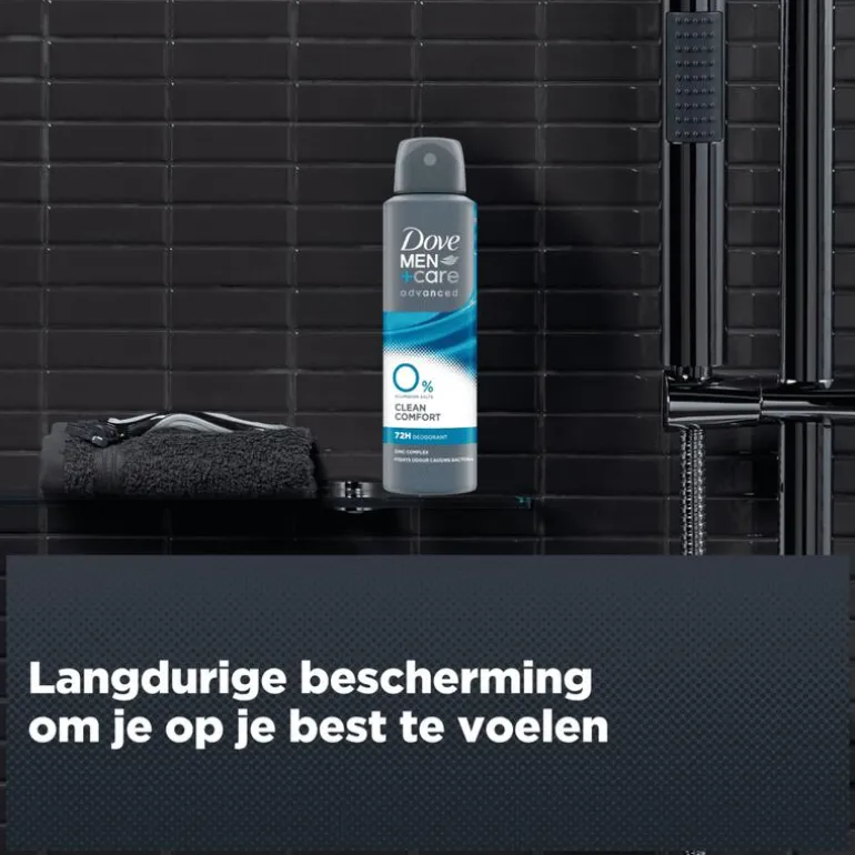 - Dove Men+Care Advanced 0% Clean Comfort Deodorant Spray met dubbele werking