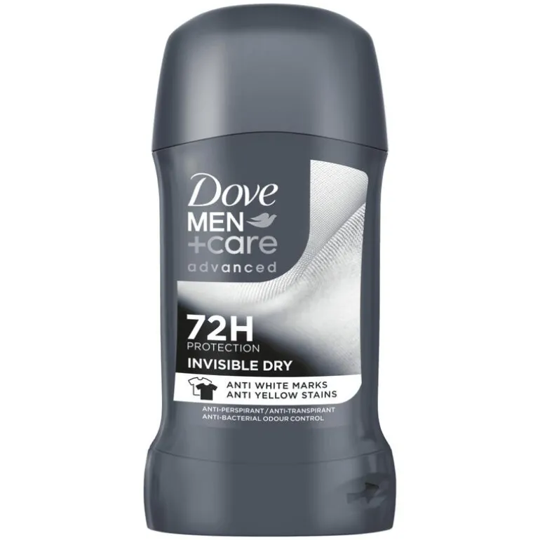 Dove Men+Care Advanced Invisible Dry Anti-Transpirant Deodorant Stick met anti-bacteriële geurbestrijding beschermt tot 72 uur lang tegen zweet en nare geurtjes en heeft een langdurig frisse geur. De milde formule van Dove Men+Care, verzorgt je huid en geeft je de bescherming die je nodig hebt. Verwen jezelf met deze deodorantstick die je 72 uur bescherming biedt tegen geur met de unieke verzorging die je gewend bent van Dove Men+Care. Deze anti-transpirant beschermt zowel je oksels als je kleding en is onzichtbaar bewezen op zwart en wit en is dus de perfecte oplossing tegen witte strepen en gele vlekken in je kleding.
