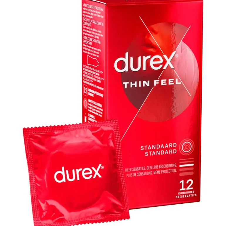 De Durex Thin Feel condooms zijn dunner dan de classic condooms van Durex voor meer sensatie. Lees de gebruiksaanwijzing aan de binnenkant van de verpakking aandachtig door, vooral bij gebruik van het condoom voor anale of orale seks. *Geen enkel voorbehoedsmiddel biedt u een 100% betrouwbare bescherming tegen zwangerschap, hiv (aids) of andere seksueel overdraagbare aandoeningen. Buiten bereik van kinderen bewaren.