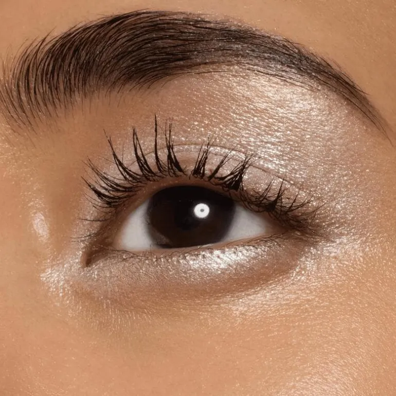 Breng over je oogschaduw aan om de oogleden highlight en extra dimensie te geven of dep op de blote oogleden voor een heldere kristallen schittering.