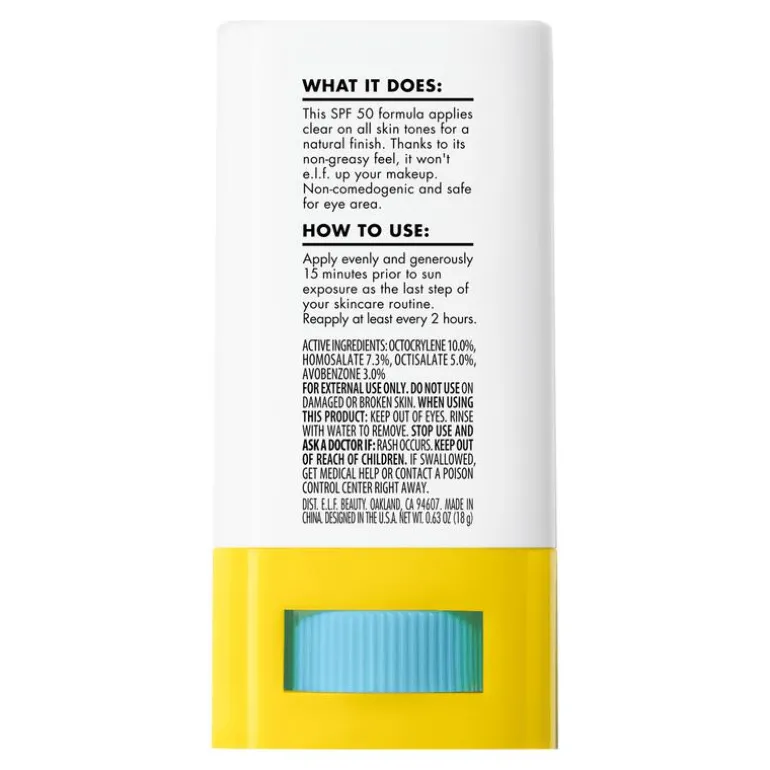 e.l.f. Cosmetics Suntouchable Invisi-Stick SPF 50 is een zonnebrandcrème die je altijd wilt gebruiken! Deze handige zonnebrandstick met UVA en UVB SPF 50 zonbescherming heeft een vloeiende formule die geschikt is voor alle huidtinten en transparant over de huid glijdt voor een natuurlijke finish (zonder witte waas!). Hij is bovendien verrijkt met hydraterende zonnebloemolie en kalmerende bisabolol. En omdat de crème niet vet aanvoelt, kun je hem de hele dag opnieuw aanbrengen. Zowel over als onder je make-up.