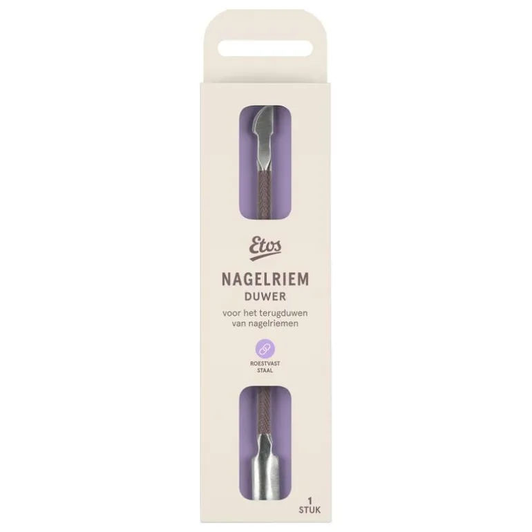 De Etos Cuticle Pusher is jouw redder in nood voor het verzorgen van nagelriemen. Met deze handige manicuretool duw je je nagelriemen eenvoudig terug en blijven je nagels er altijd netjes en verzorgd uitzien. De nagelriemduwer is bovendien gemakkelijk in gebruik én compact genoeg om overal mee naartoe te nemen.
